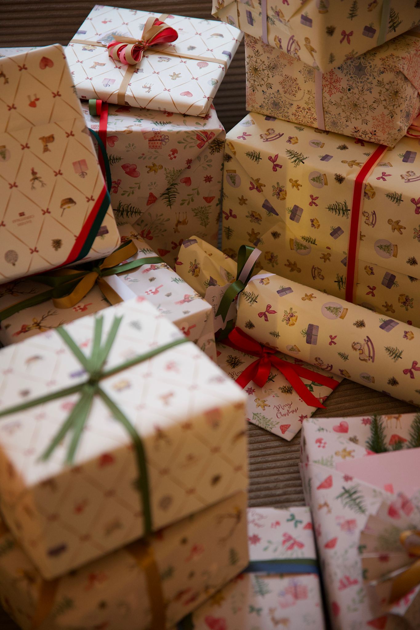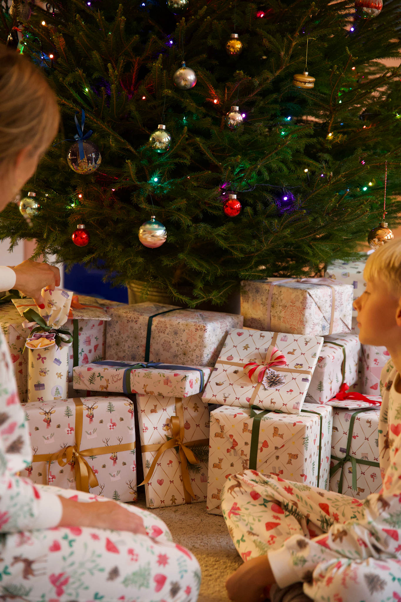 På gavepapiret finder du tryk af forskellige originalværker i akvarel – sat op i en grafisk komposition, der klæder gavepapirets format.