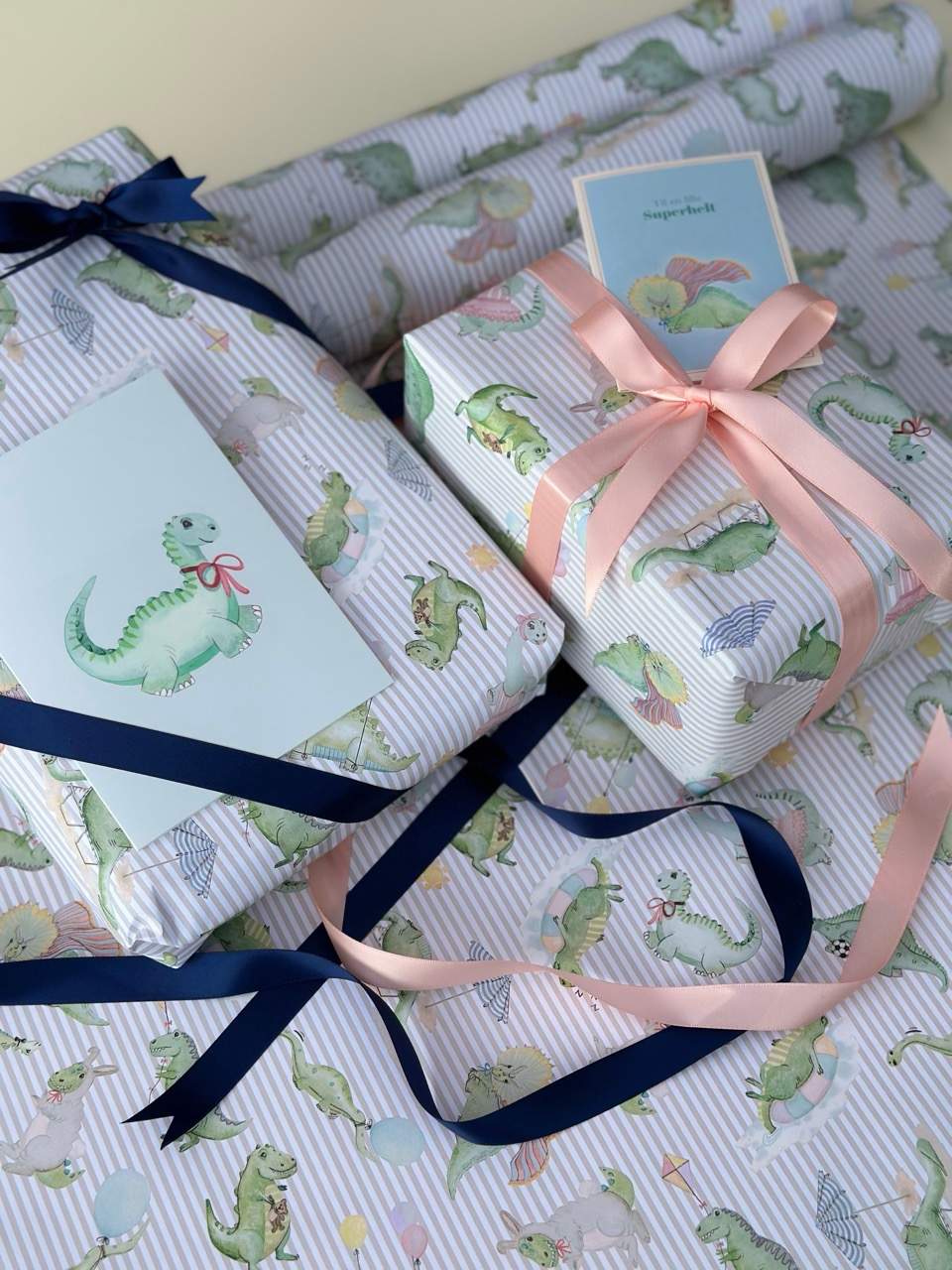 Tilbudspakke med alt du skal bruge til flotte pakker i Dino-tema*
