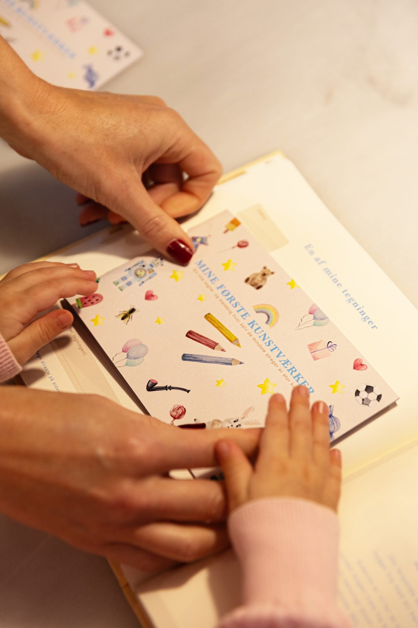 Siderne er perfekt størrelse til at kunne klippes ud og limes ind i vores BOGEN OM MIG, så barnets tegninger foreviges sammen med barndommens minder.